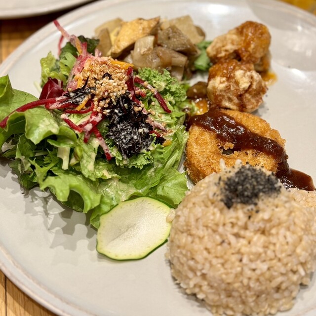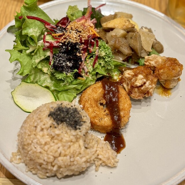 お料理は、ゼニ麩のカツ・ピクルス・ソイミート唐揚げがフィックスで、デリ3種は日替わり...