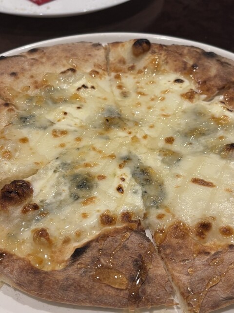 ちょっぴり贅沢なコース♪人気メニューの切りたて生ハムやチーズリゾットも含む豪華全9品に2時間飲み放題付。 チーズ好きにはたまらない4種のチーズのPIZZAがコースに入っております。 ハチミツをかけてどうぞ!
