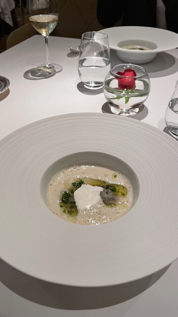 ノンアルコールのシャンパンを注文。非常に飲みやすく、キリッとした辛口の味わいが料理との相性抜群だった。