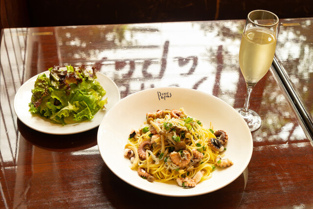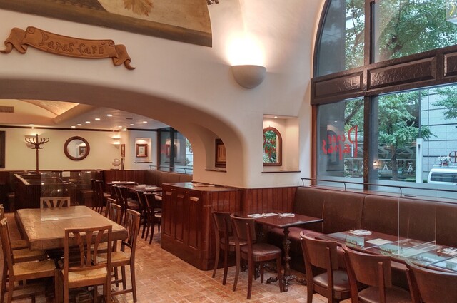 アパレルブランド「パパス」「マドモアゼルノンノン」の丸の内本店に併設されたカフェ。天井が高く木目調の落ち着いた雰囲気で、ゆったりとした時間を過ごしていただけます。ケーキも料理も店内で全て手作り。サンドイッチなどの軽食の他、パスタや店内の石窯で焼く本格的なピッザなどしっかりとしたお食事もお楽しみいただけます!