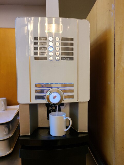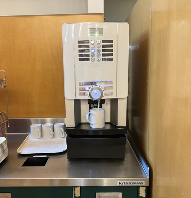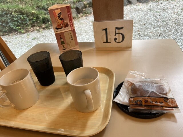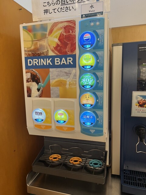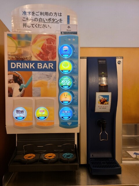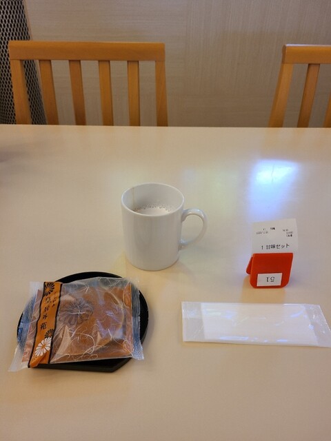甘味セットにはドリンクバーがつきます。コーヒーやお茶にジュース飲み放題。店内イートインスペースはかなり広々と...