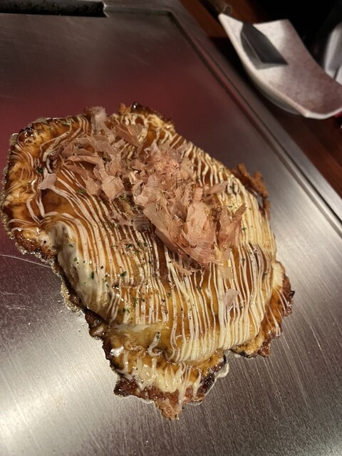 有楽町駅から近く、高架下とは思えないモダンで落ち着いた雰囲気のお店。看板メニューの「パチパチ焼」は、山芋たっぷりの生地がふわふわで、具材の旨味が凝縮されています。お好み焼きだけでなく、鉄板焼きの海鮮や...