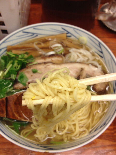 (2017/12/14) 平日の夜7時頃、多分初めて訪問。その時間では並んでいる客は私の他は1人だけ。券売機でチャーシュー柚子柳麺(内税930円)を注文。カウンターから調理してい... 続きを読む»