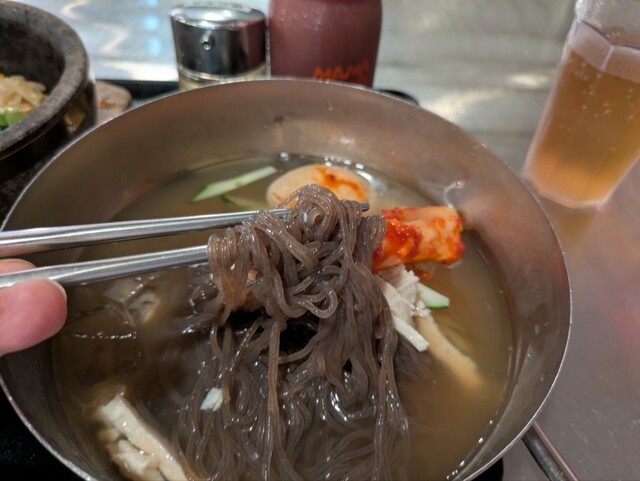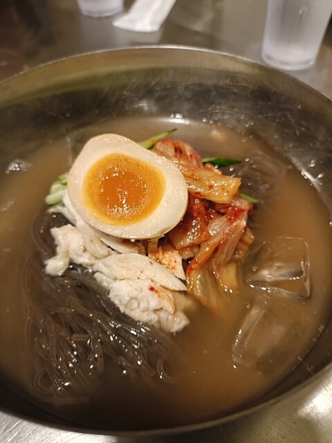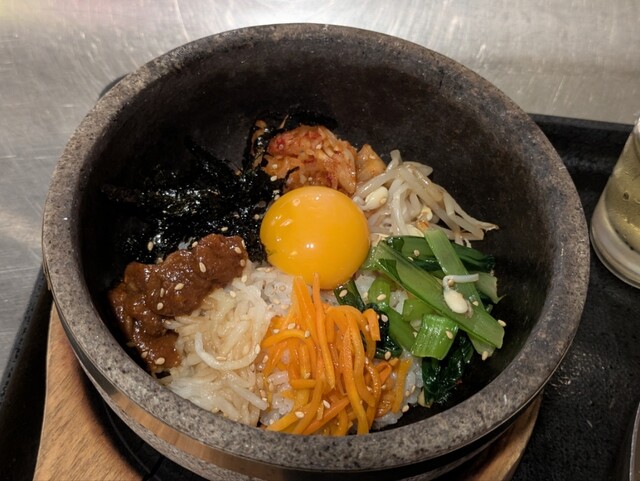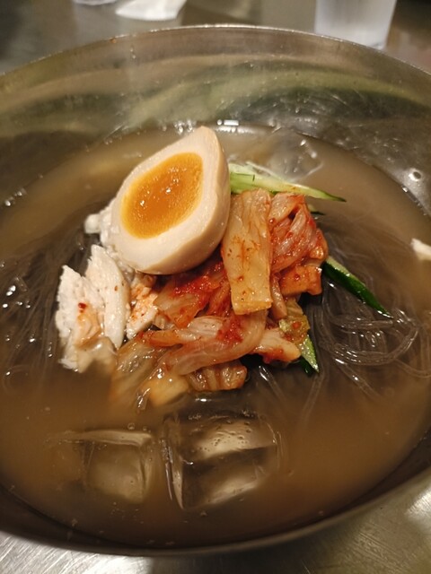 ランチメニューの冷麺と石焼ビビンバのセット(\1,400)を注文です。