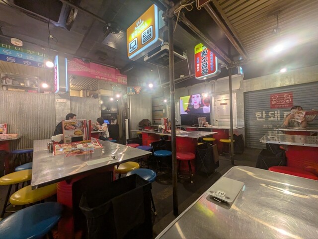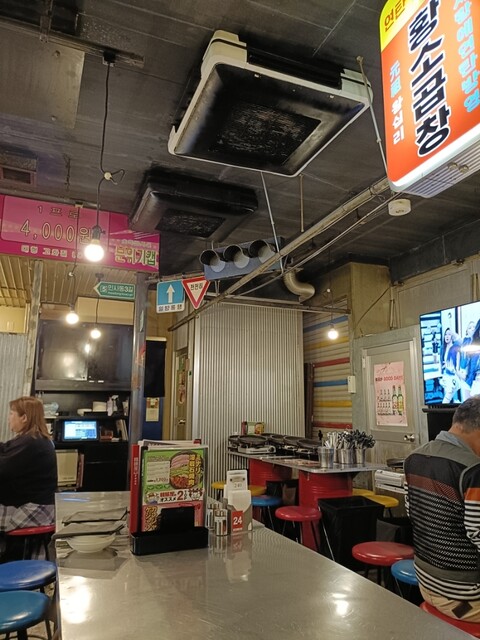 店内は安居酒屋風を演出してます、お昼からサムギョプサってる女性陣もおるなぁ。