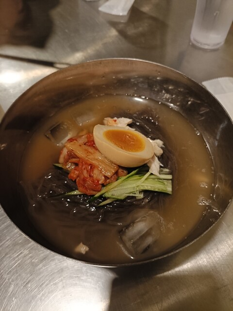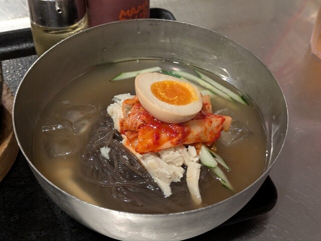 真っ黒い麺の本格冷麺と小ぶりな石焼...