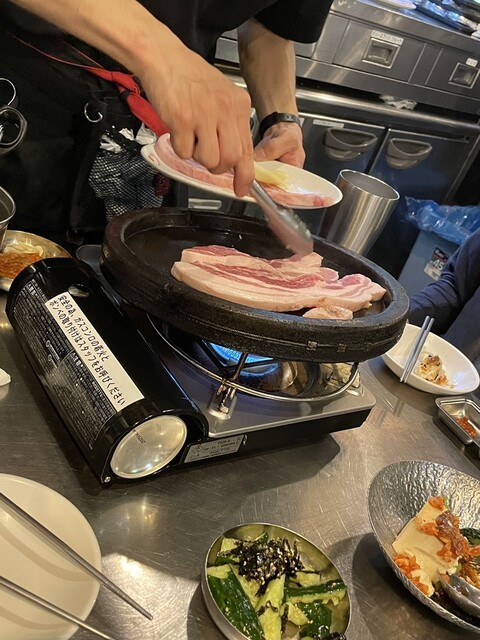 溶岩石で焼き上げる絶品サムギョプサルと韓国料理を堪能♪