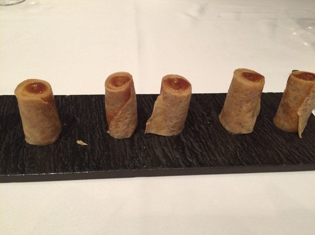 もちもちのクレープ生地に塩キャラメルが巻かれて、小さく一口大にカットされて出てきます。