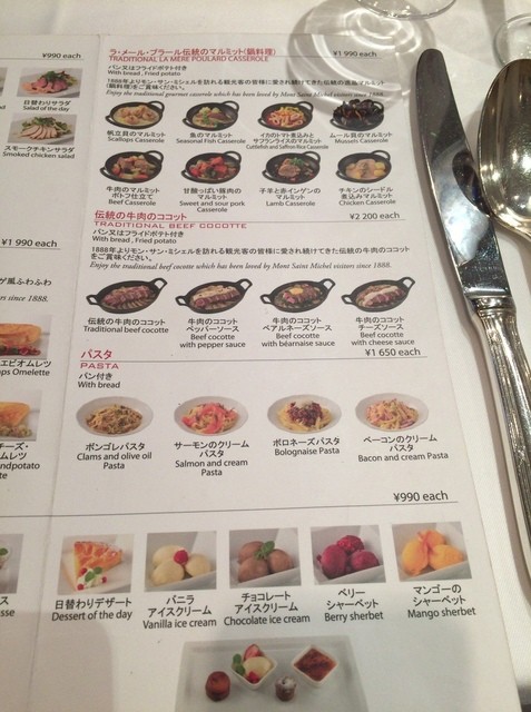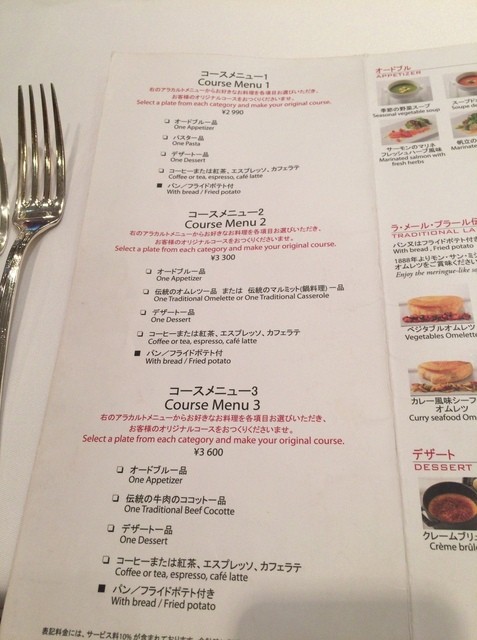 コース2(\3,300)はオードブル・オムレツ又はマルミット(鍋料理)・デザート・コーヒー