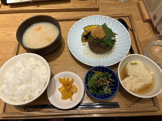 メインのハンバーグはふっくらとし美味しいくオロシでさっぱりとした味わいですが、私は副菜として付いている豆乳おぼろ豆腐が大好...