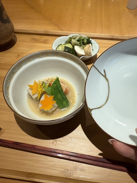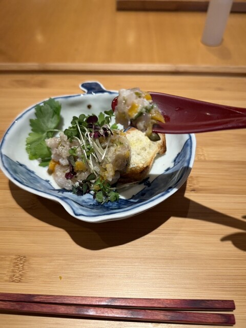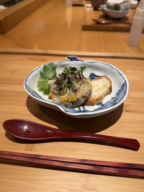 この日は事前に予約をしていなくて、訪問する直前に電話確認をしました。 突然にも関わらず丁寧な対応がありがたかったです。 事前予約無しでOKの白虎コース今回いただいた、おまかせコース白虎は22,000円(税・サ別)。 ●平貝、ホワイトアスパラ、春野菜の白和え 瀬戸内産の平貝とたっぷりの野菜を使った一皿。 ●オコゼの若竹煮 お椀は出汁の香りがとても良いです。 瀬戸内のオコゼは... 詳細を見る