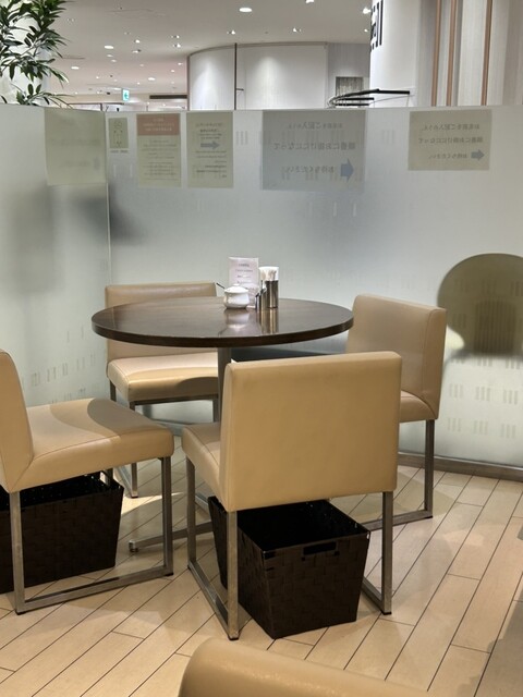 松屋内にあり土日でも比較的すぐ入れるカフェです。 ランチメニュもあるようで1人でも入りやすい空間です。