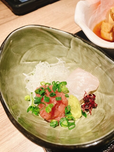 ⭐︎近大マグロと紀州和華牛のステーキを愉しむ夏の近大季節会席【耕】のコース 9,500円 ・ 【前菜】 近大マグロとアボカドのタルタル 近大マグロの山椒煮 近大選抜鮮魚のなめろう 【お椀】 近大マダイと胡麻豆腐 枝豆の摺り流し 【お造り】 近大マグロ二種と近大ブリヒラの焼霜... 詳細を見る
