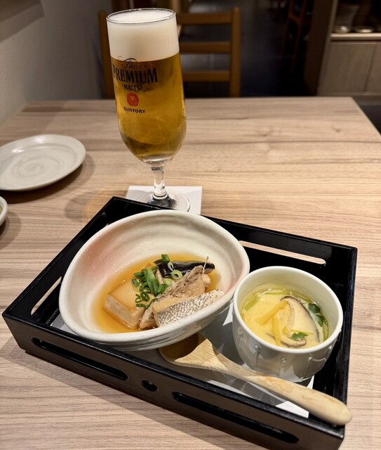 和歌山県産しらすと刻みわさびの鯛めし茶漬900円とプレモル生800円等を注文。