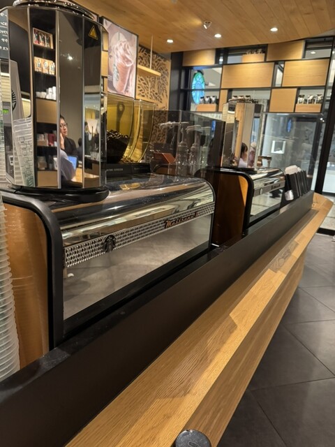 スタバの窓際カウンター席があります。