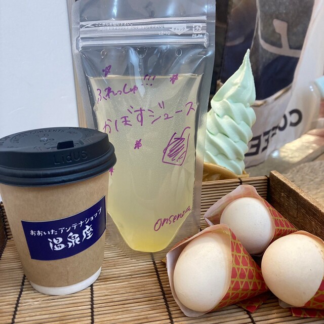 東京交通会館 地下1階にある「おおいたアンテナショップ温泉座」です!! おおいた名産の「かぼす」を使った厳選スイーツや、おおいたの郷土料理「地獄蒸したまご」が味わえます。ソフトクリームマニアの方、食べ逃し厳禁ですよ~ 日本一の湯処「別府温泉」直送の、肌に優しいオリジナル入浴剤やコスメも取りそろえています。足湯は毎日「無料」でサービス中!! 足湯に入りながらの「ながらソフト」が話題です★