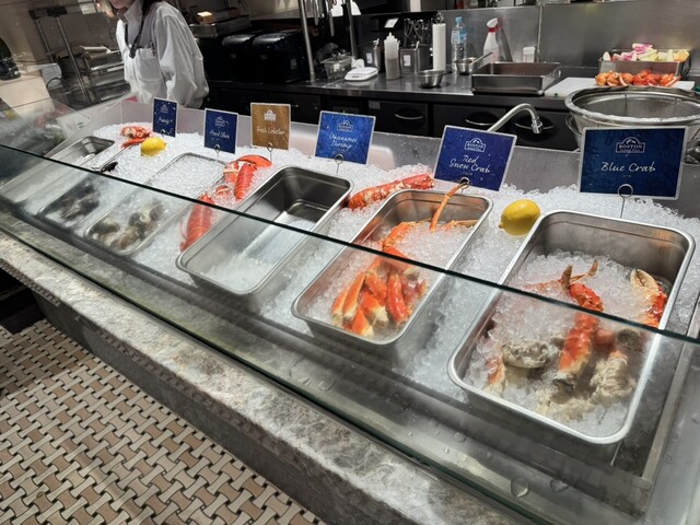 本日の海老や蟹、貝などからご用意する「シーフード・プラッター」をはじめ、数種類のシーフードにソースを絡めて調理する「シーフード・コンボ」、シーフードの王様「活けオマール海老」などをご提供致します。