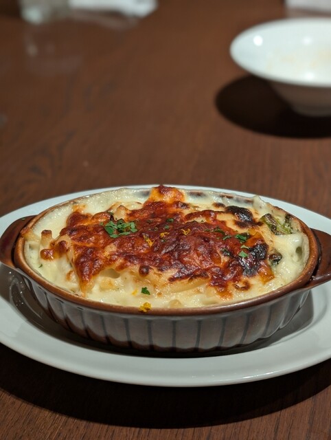 知人に誘われて初訪問。 入り口からヨーロッパにありそうな雰囲気。 なかはこぢんまりとしていて、やや暗め。 お酒は基本カーヴドッチのワイン。 アラカルトで 帆立と真鯛とサフランのリエット おすすめのマグロのうなじ 真鯛のブイヤベース 鴨肉のロースト 〆にブイヤベースのリゾットをいただきました。 ワインはアルバリーニョ、シャルドネ、ピノノアールにしました。 スタッ... 詳細を見る