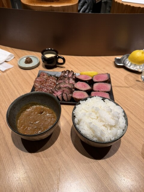 金曜の夜、彼と有楽町デートで訪問。 店内はカウンター席のみのオープンキッチンスタイルで、 目の前で牛たんをカット&盛り付けてくれるライブ感が最高! 名物の「極みステーキ定食」(3,600円)をオーダー。 これが想像以上に豪華で大満足! 【内容はこちら】 ・極厚牛たんステーキ 6切れ ・テールスープ ・とろろ ・牛たんカレー ・牛たん肉味噌 ・サラダ(目の前でドレッシ... 詳細を見る