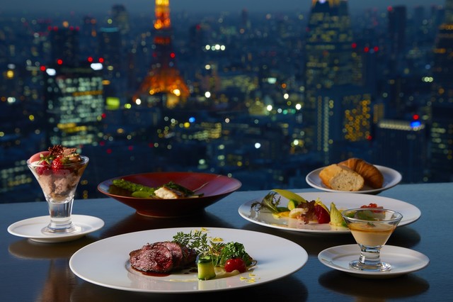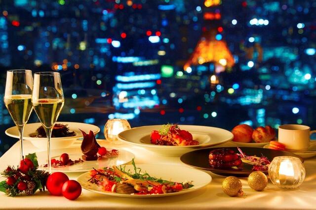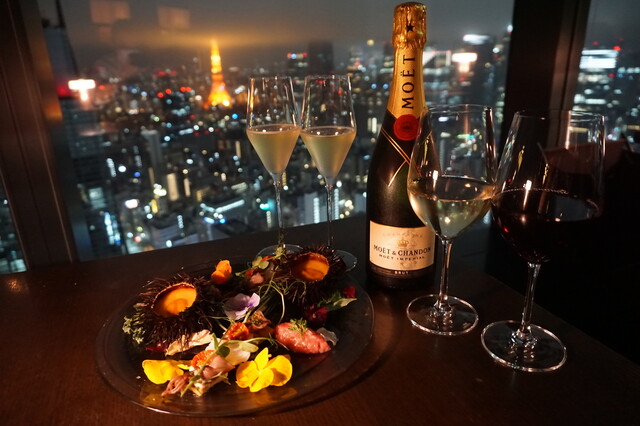 ▷ 東京タワーを望む窓際席がロマンチック