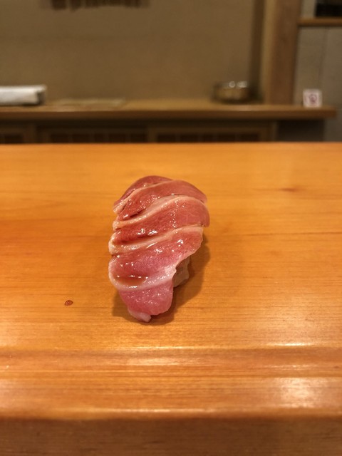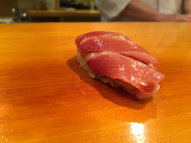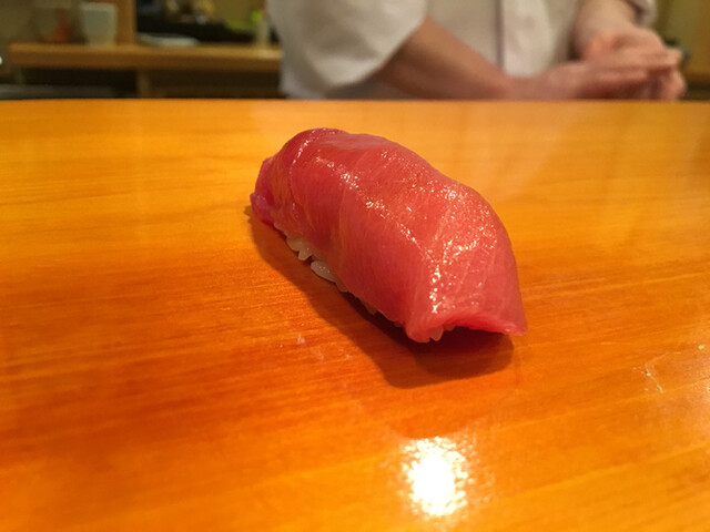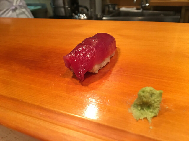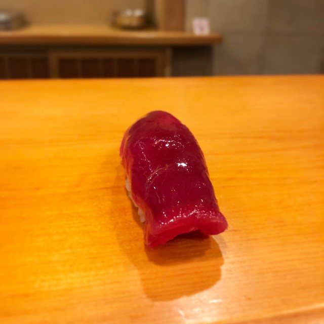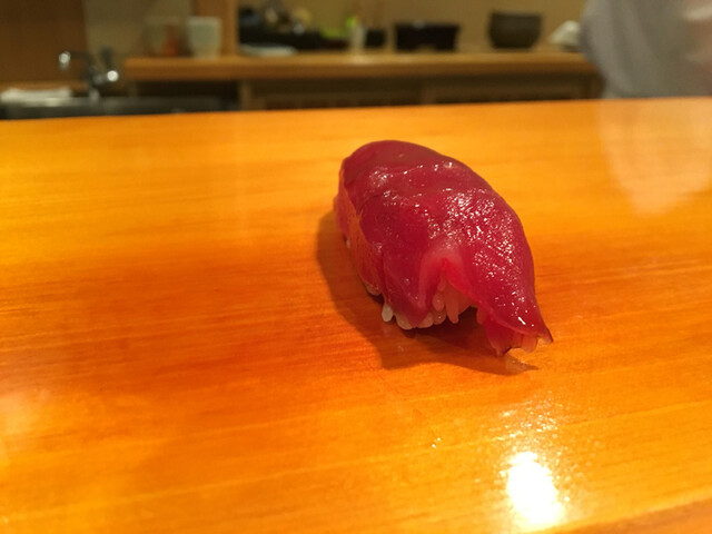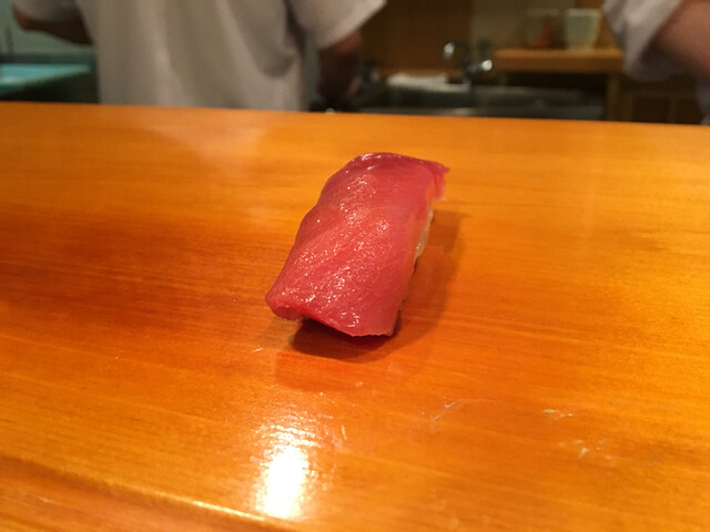 4.赤身・・・贅沢な切り付けで飾らない男前な握りです。マグロの鉄分がいいですね〜やはり酢飯の酸味が大人しくなったような〜