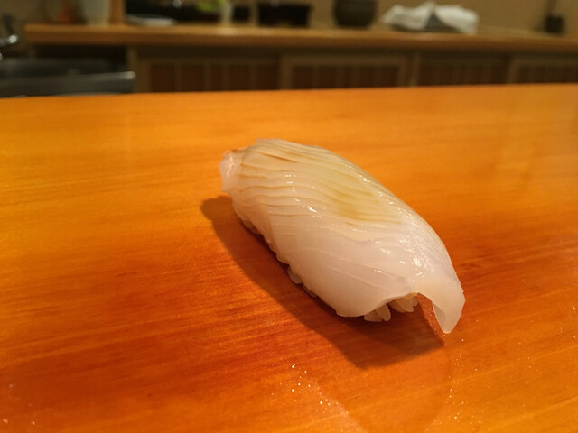 3.イサキ・・・素晴らしい切り付けのイサキは磯の滋味に満ち溢れ脂もまったりと甘い。
