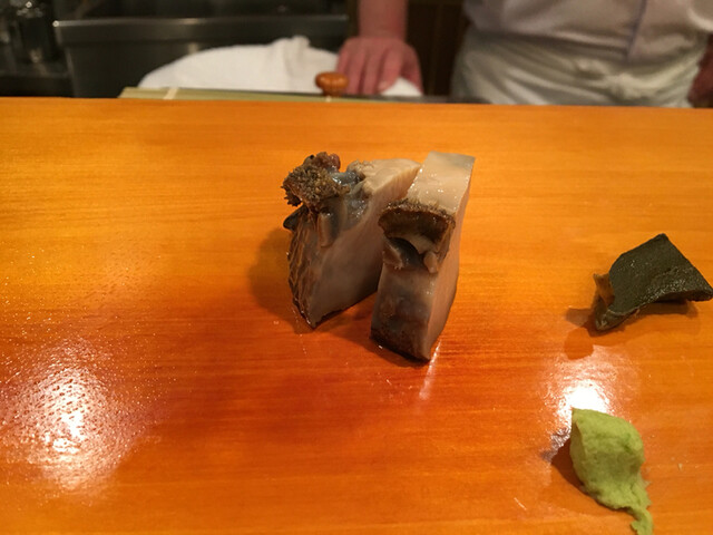 ⭐︎蒸し鮑・・・やっぱり夏ですから蒸し鮑の握りが食べたくてお願いしたんですがつまみなら出せると!清水さんがニヤッとしたので嫌な予感はしましたが2切れを注文しました。磯の滋味がうまうまに凝縮された肝はもちろんのこと香り高く炊かれた鮑は柔らかな中にもしっかりした歯応えを残しつつ絶品でした(๑˃̵ᴗ˂̵)