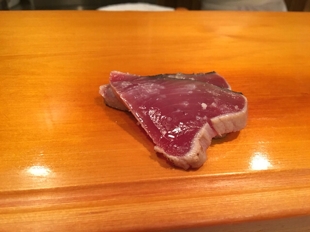 3.カツオ・・・初鰹の爽やかな鉄分に柔らかな輪郭の酢飯の酸味が香り立ちます。余韻も美しい〜
