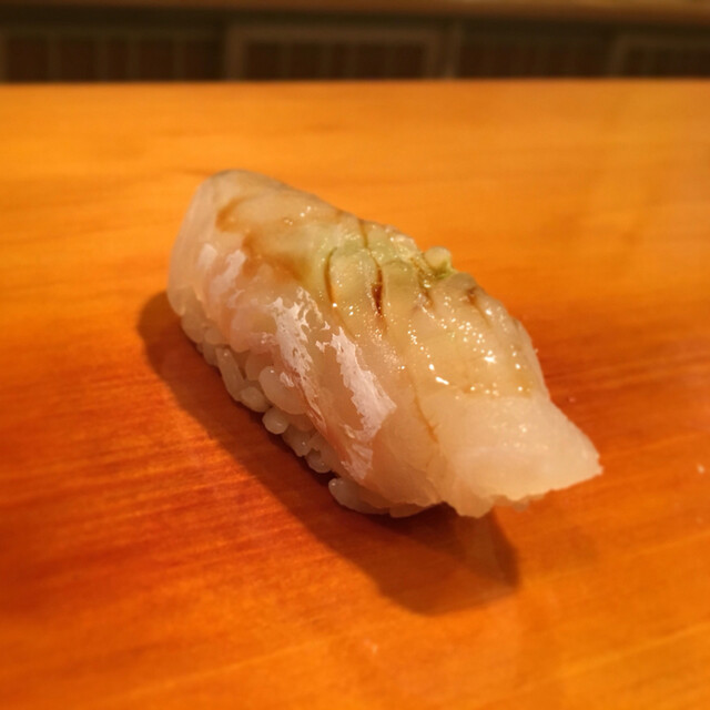 1.カレイ・・・ゴリッと肉厚でいい身質です。切り付けもよく立派な佇まいの握りに新ばししみづに来たな〜としみじみ!以前伺った時に酸味が穏やかに感じましたがやっぱり切れてますね〜