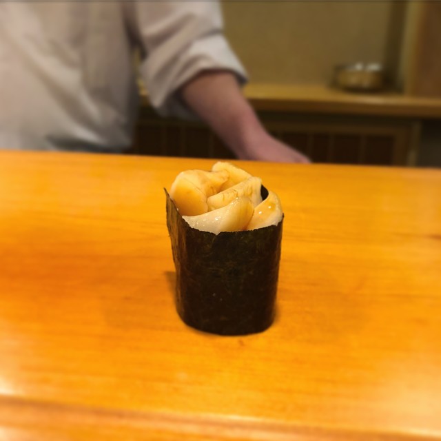 ⚫︎たいらぎ・・・細長く大振りに握ります。サクッと上品な甘味に舌鼓