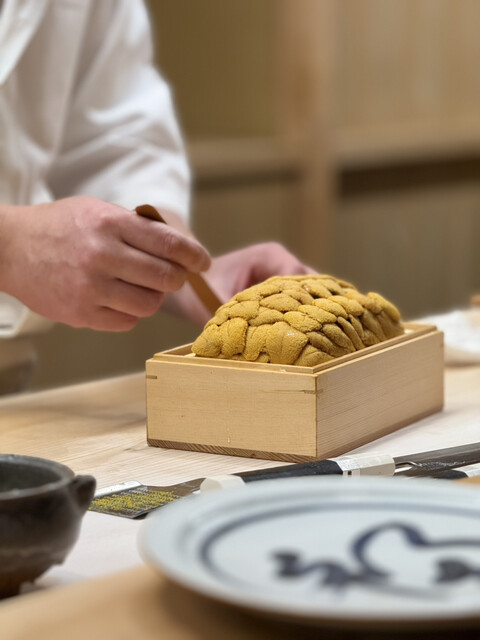 今回は握りのみのコース(30,250円)にしました。おまかせコースだと60,500円ですが、半分ぐらいの方がおまかせコースを頼まれており、内容はセイコガニやお造り、焼き物などのつまみが色々入るもののコスパという点では高く感じるかもしれません。3万円の握りのみの...