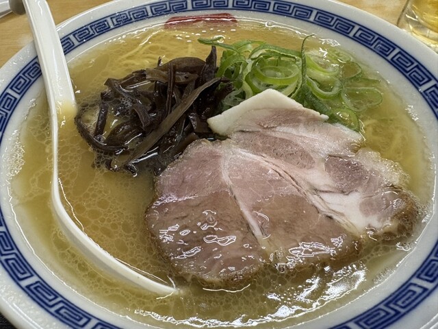 平日のお昼に店前から漂う強烈な豚骨臭に引き寄せられて訪問!新橋駅から歩いて5分ほどのお店です!並びは無く入れました。店内はカウンター5席、テーブル4席ほどで店主さんのワンオペです。お冷はセルフで紙エプロンは無さそうです…強烈な豚骨臭の中で特製ラーメンを注文!麺種と硬さも選べるので細麺(長浜麺)、硬さはばりかたでお願いします!卓上調味料は、麺タレ・すりゴ...