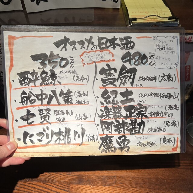 | ドリンク | 日本酒あり、焼酎あり、ワインあり、焼酎にこだわる |