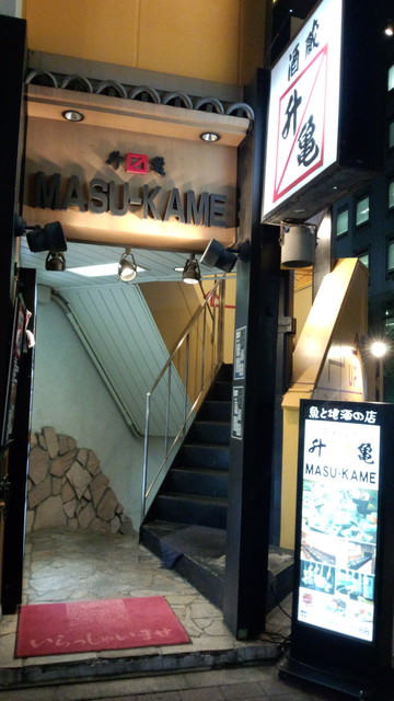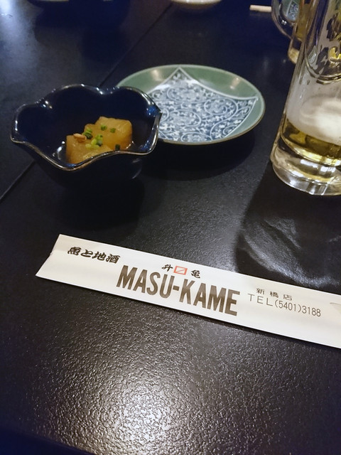 新橋赤レンガ通り沿い、新橋3丁目の信号の角、 地下に降りた居酒屋。 升亀(マスカメ) 新橋店 狭くて素っ気ない入口ですが、 階段を降りていき、地下1階の店舗入口から、 中へと入ると、意外とそこそこの広さがあります。 半個室の掘りごたつ式のお座敷もあり、 席数は、50席あるとのこと。 それでも、テーブル席は、ほぼ満席。 相変わらずの賑わっています。 店内は、和風居酒屋... 詳細を見る
