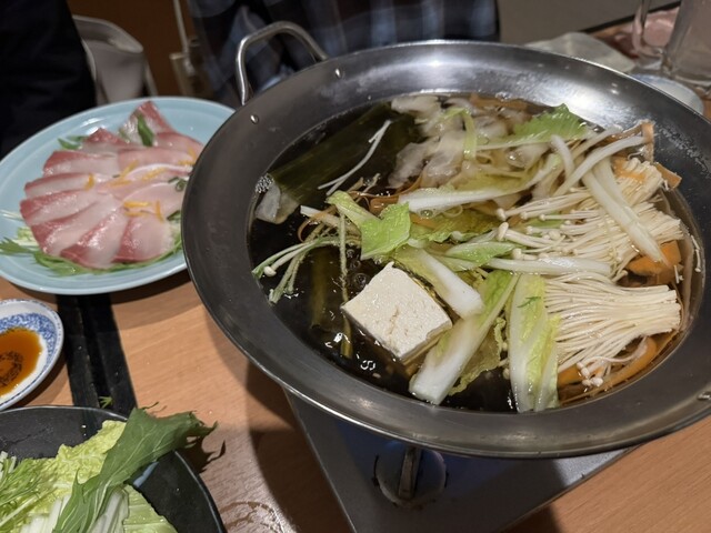 冬に旬を向かえるぶり。お刺身でも食べられる豊洲市場、直送のぶりを熱いだし汁にくぐらせ、野菜と一緒にいただく冬の鍋です。ぶりの旨みがぐっと引き出されます。おなかも心も温まるひとときを! 地酒まで飲み放題!