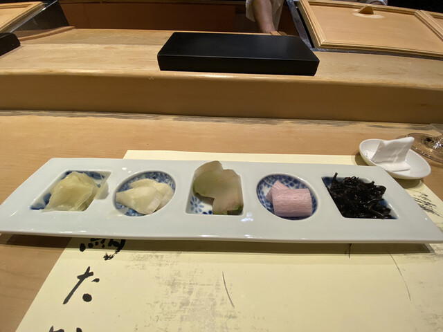 唯一気がかりなのは、関西の有名寿司店に伺った際に、そちらの店舗は寿司を乗せる台をこまめに拭かれていたので、台が常に綺麗でしたが、こちらの店舗は前の寿司のシャリの黒酢?やお醤油が台に残ったまま、次のお寿司を置かれていたのがどうしても気になりました。