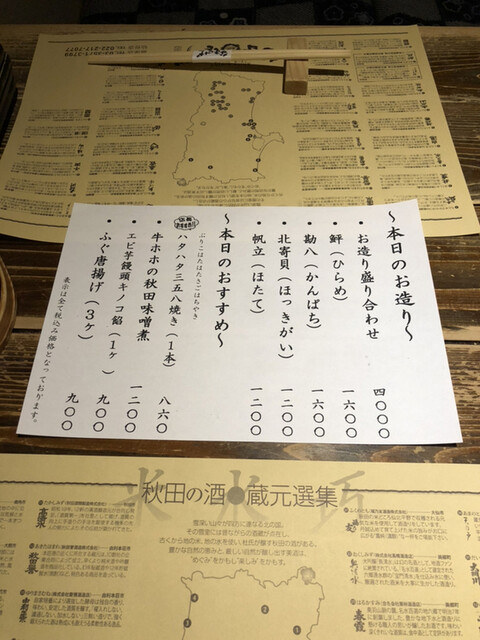 秋田料理は普段なかなか食べられないのでメニューの内容から新鮮でした。