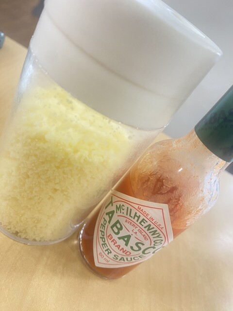 卓上に粉チーズとタバスコがあるのもありがたい。