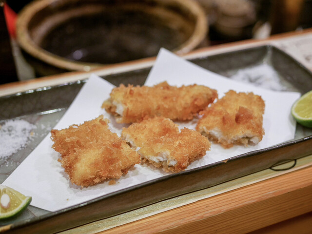 いつものお任せコース ・穴子の茶碗蒸し ・筍のおすまし ・お造り 蛍烏賊、鳥貝、中トロ、平目 ・海老しんじょうのお椀 ・ふぐ刺身、皮湯引き ・ふぐ唐揚げ ・ロース... 詳細を見る