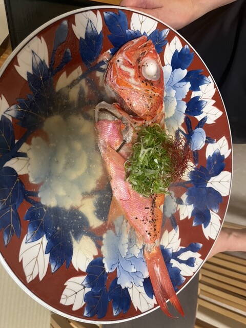 コースでいただきましたが、付け出しの酒盗から旨い。刺身にキンキの蒸したの、〆は出汁のおじやまで、全部うまい
