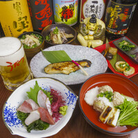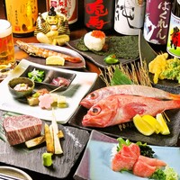 お刺身5種盛りやつぼ鯛、帆立バター、和牛ヒレ肉など、豪華料理が並ぶ極選コース。厳選食材を使ったコースはお一人様づつご提供、宴会はもちろん、接待や会食、歓迎会や送別会、お祝い、同窓会など大切な方との特別なひとときにおすすめです。エビスビールも含む2時間飲み放題付です。