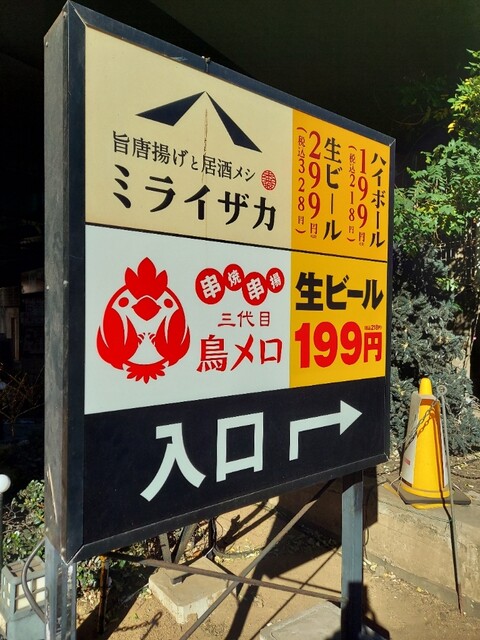 (※隣りに鳥メロがあります。JR新橋駅から見ると、手前が鳥メロ、奥がミライザカです)