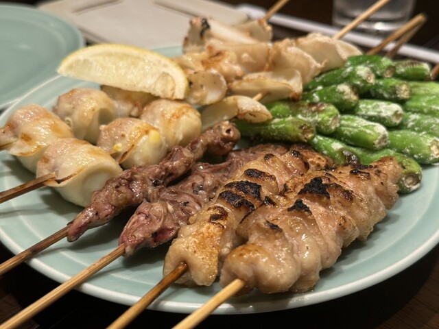 備長炭で焼き上げる、ジューシーな国産鶏の焼とりを堪能