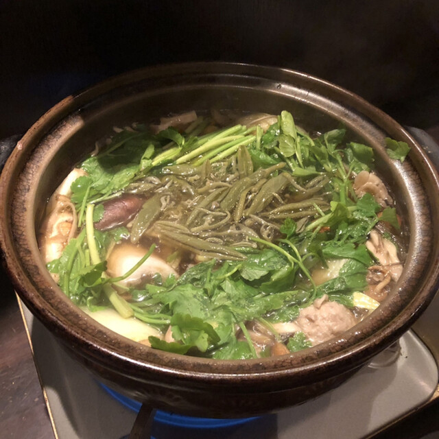 きりたんぽ鍋は【美人鍋】で、内臓に良いものばかりがキノコや根菜、セリにジュンサイと色々入っていました。