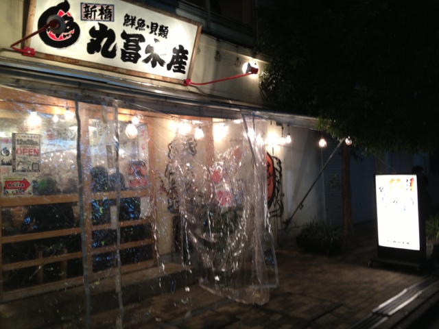 久しぶりで新橋の飲み会。新橋の烏森口で待ち合わせし、歩いて数分の丸富水産へ。