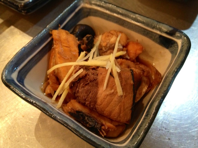 ダントツ人気のあら煮は、なんと¥180!鰤や鮭など何種類かの魚が煮込まれていて旨い。