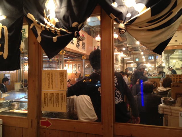 人気店で満員。二組が寒空の下、表で待っている。