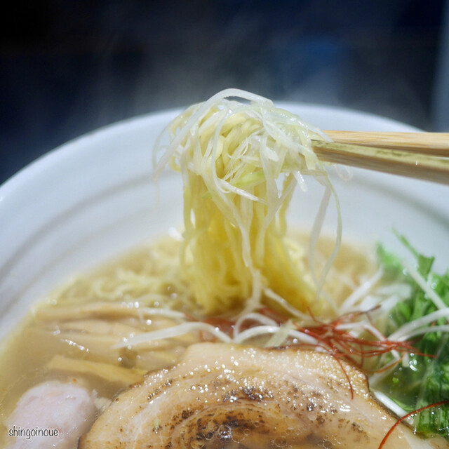 東銀座、築地市場、新橋の丁度真ん中に位置するお店で、2017年から8年も連続で百名店を受賞している実力店です。 10月の水曜日。閉店間際の14時半に伺うと、雨の日もあってか、すぐに入ることができました。 食券制で、1番人気の ▽塩ラーメン(1100円) に決めました。 食券を渡して... 詳細を見る