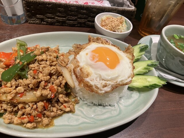 ガパオライスやグリーンカレーなど定番メニューはしっかりハーブが効いていて、甘さ・辛さ・酸味のバランスがタイ料理らしい感じ。