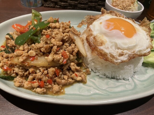 辛いものを求めて彷徨いつつこちらへ。 13時半になるのに満席。相変わらず人気です。 季節のガパオは牡蠣だったので今回は遠慮しました。 ガイ・パット・バイガパオ・ラート... 詳細を見る